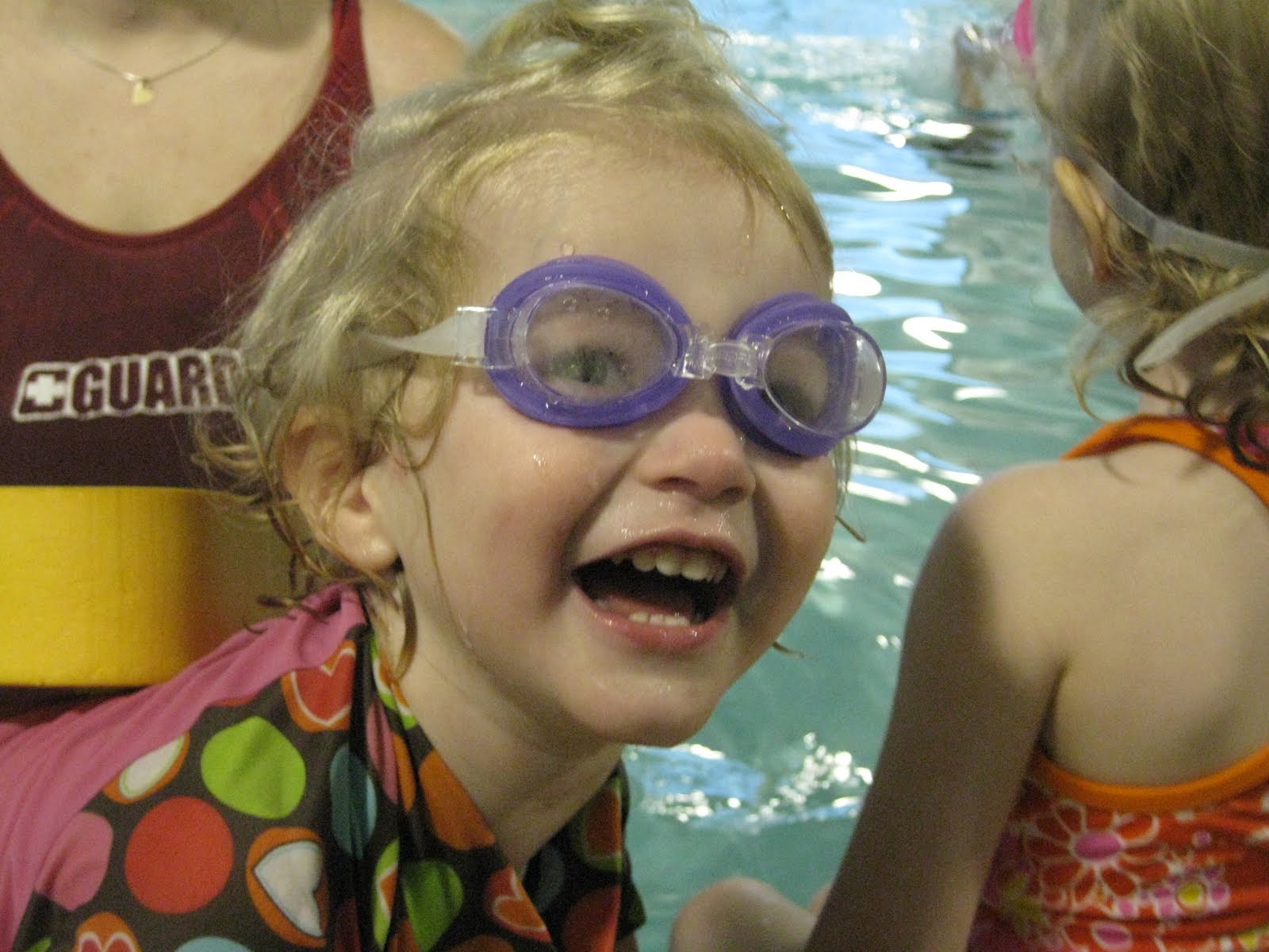 Mia on the other hand wasn't so sure this time. When I (Elise) asked her what her favorite part about swimming lessons was her answer was "watching". But we are excited we just ordered her prescription goggles for only $30. Woo Hoo. I think that will help tremendously to boost her confidence.